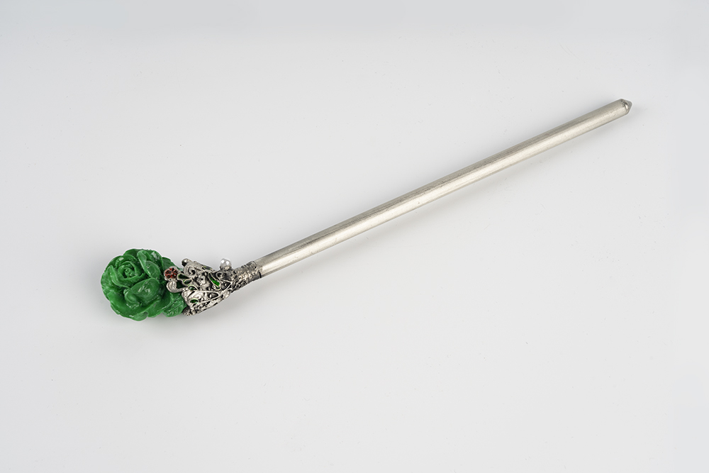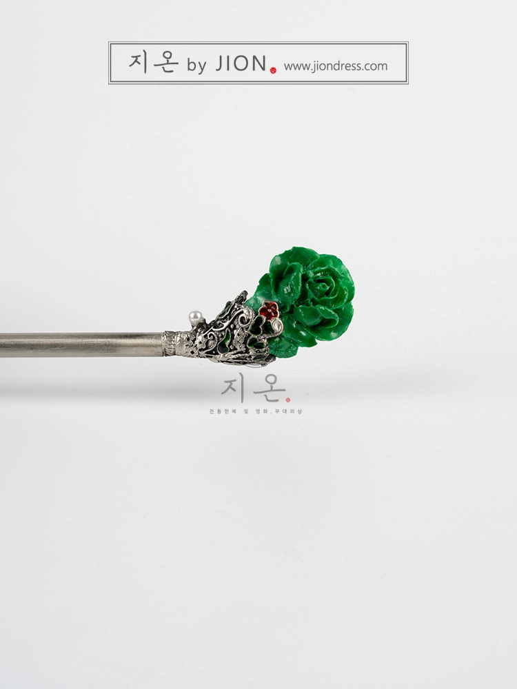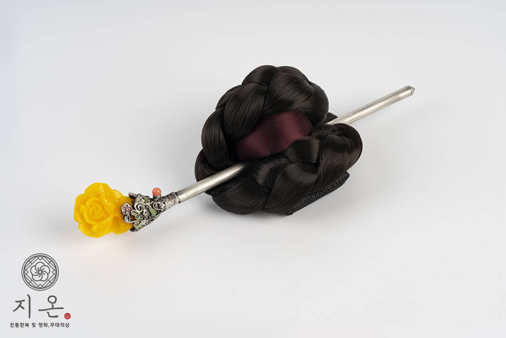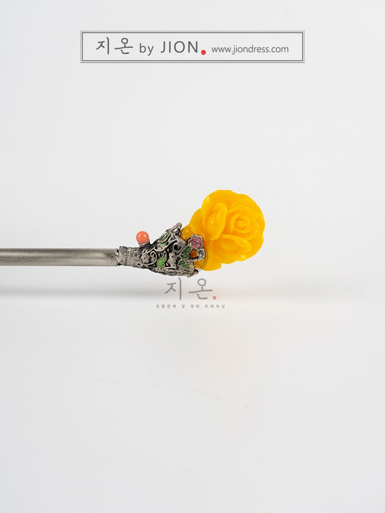 장미모양의 장식이 돋보이는 전통 비녀입니다.