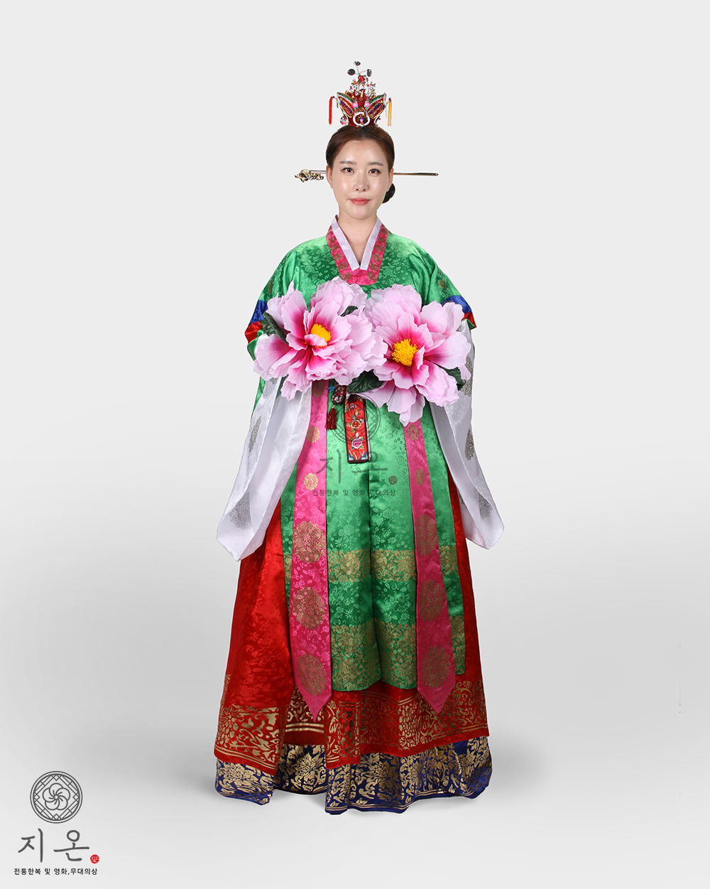 구성 : 치마, 저고리, 원삼, 속치마, 속바지, 가슴띠, 한삼, 한삼채, 목단꽃
