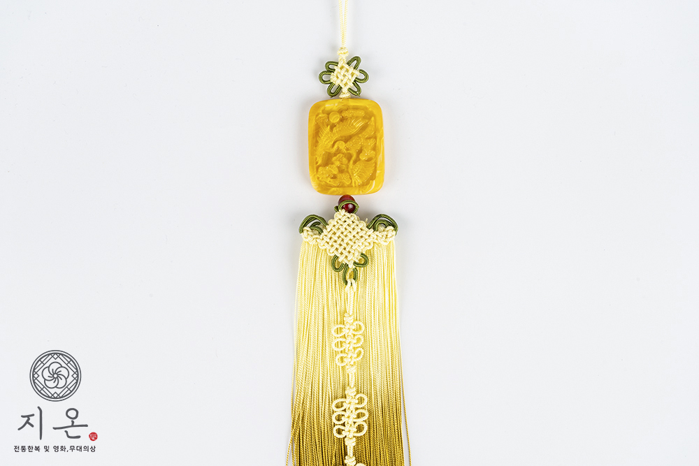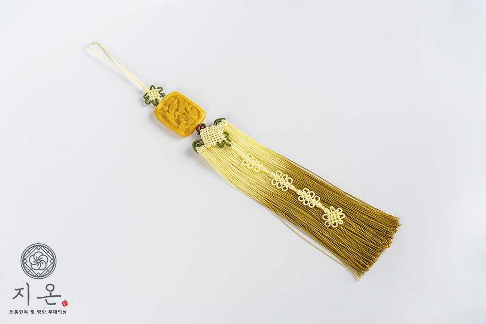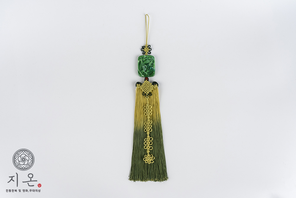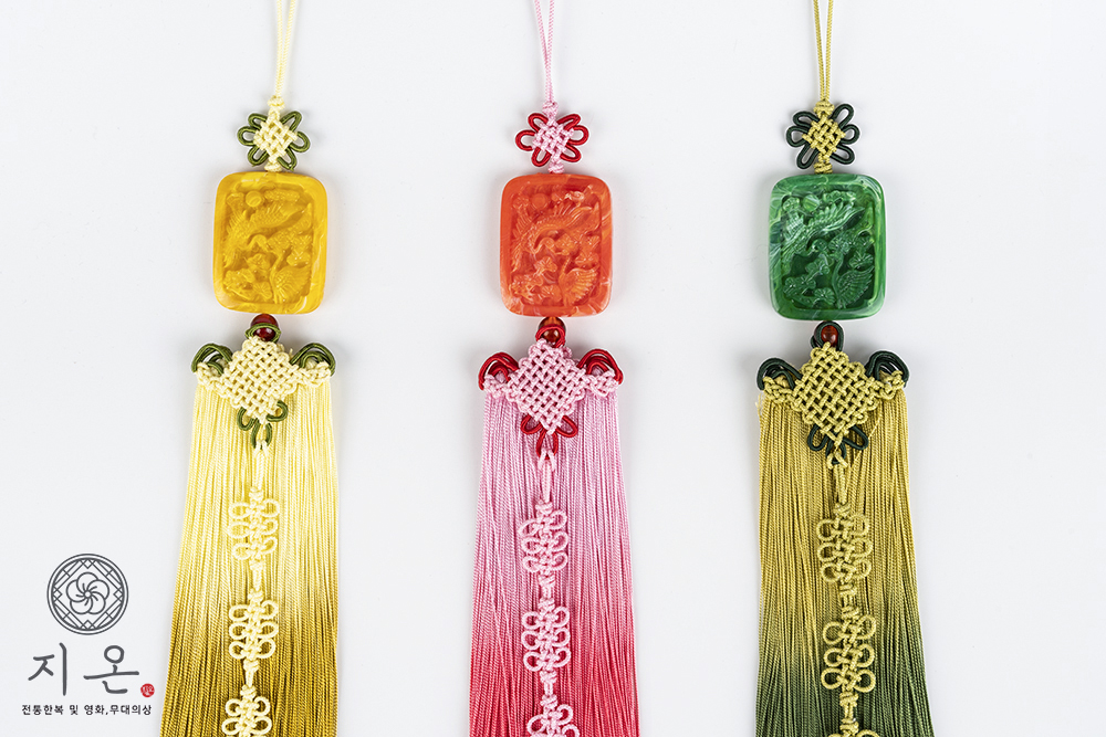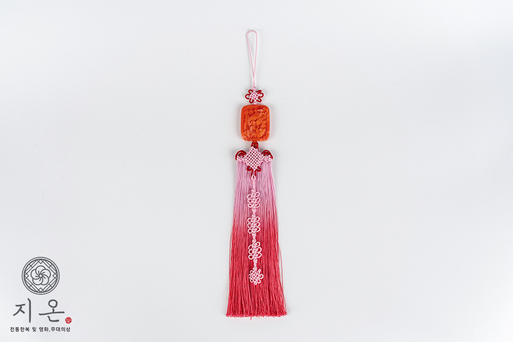 투톤의 화려한 색감을 자랑하는 수술위에 다소곳이 자리한 매듭과