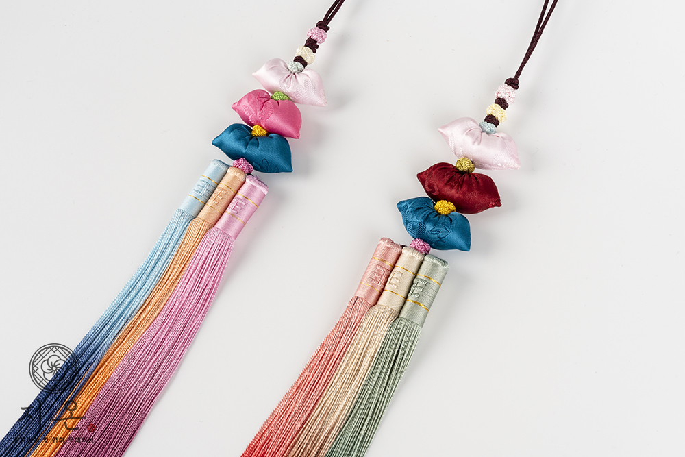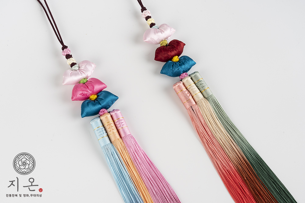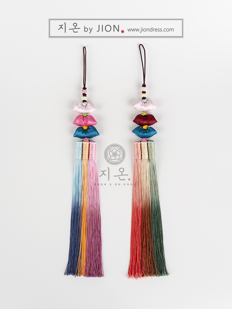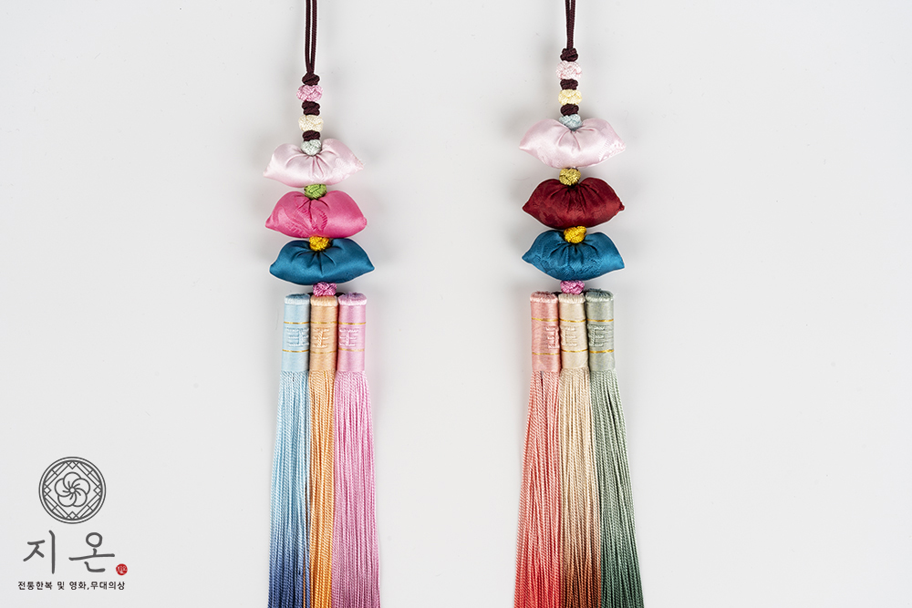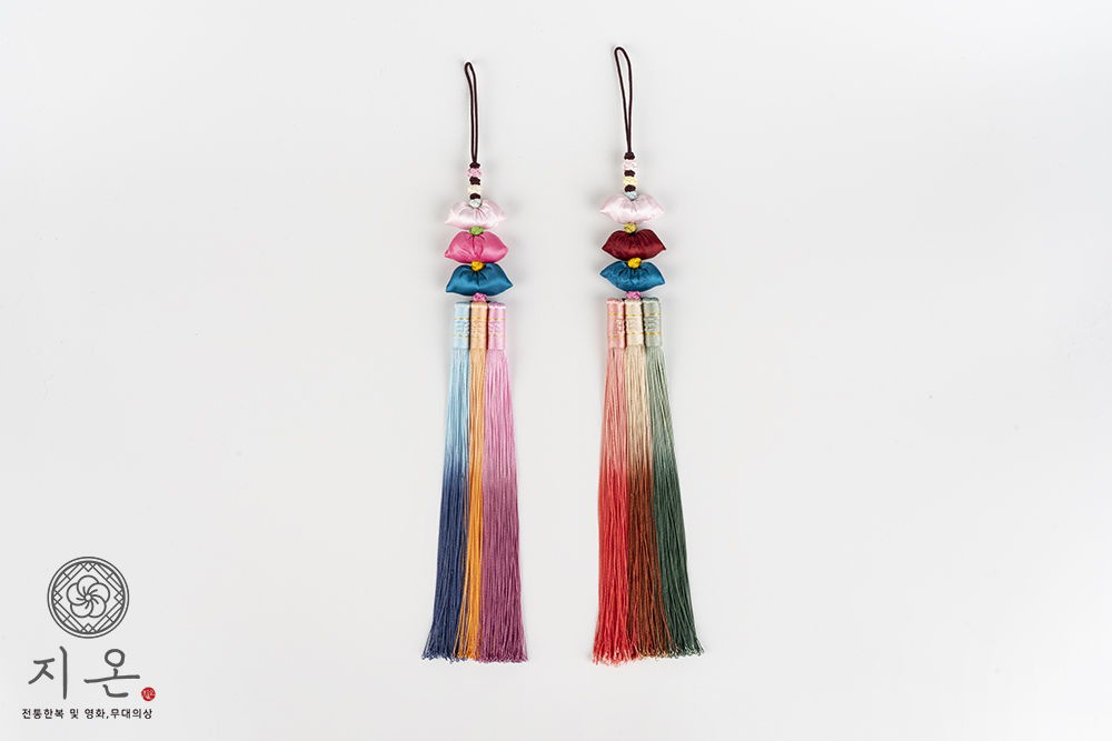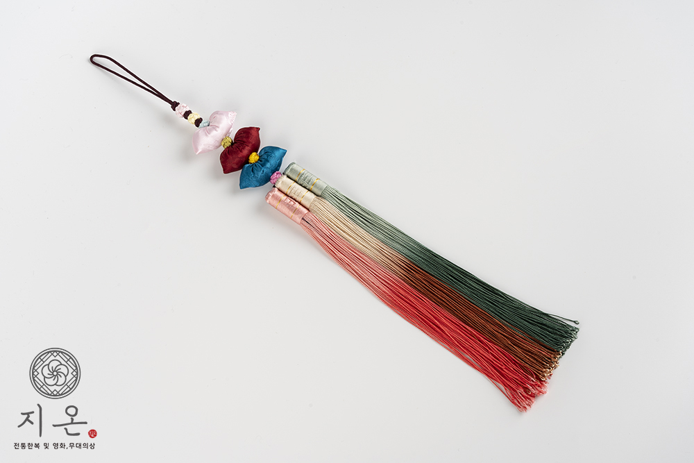 새갈래의 파스텔톤 수술이 늘어진 아름다운 노리개입니다.