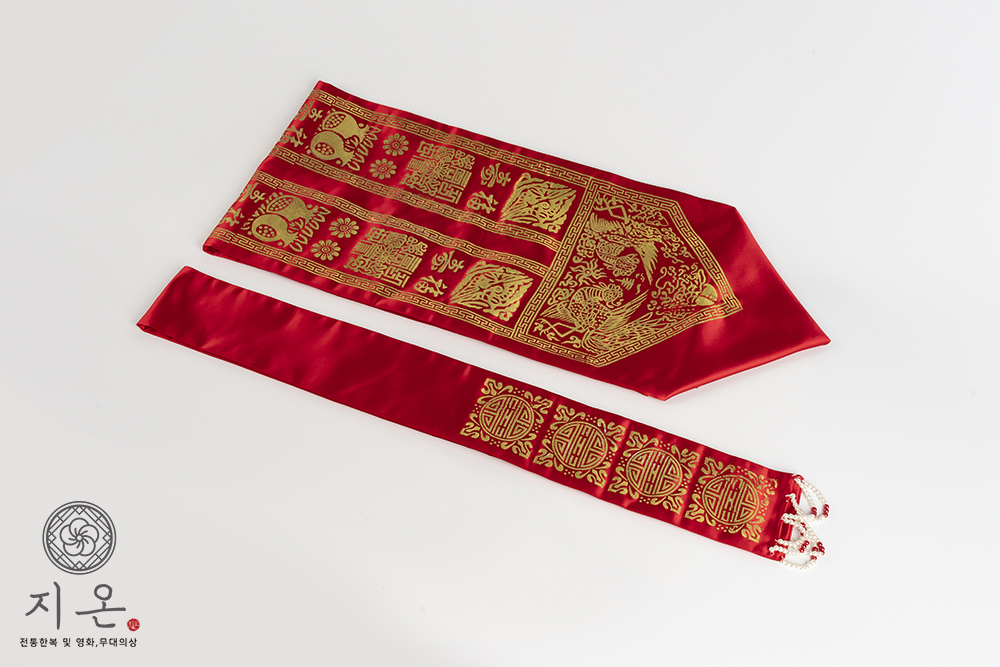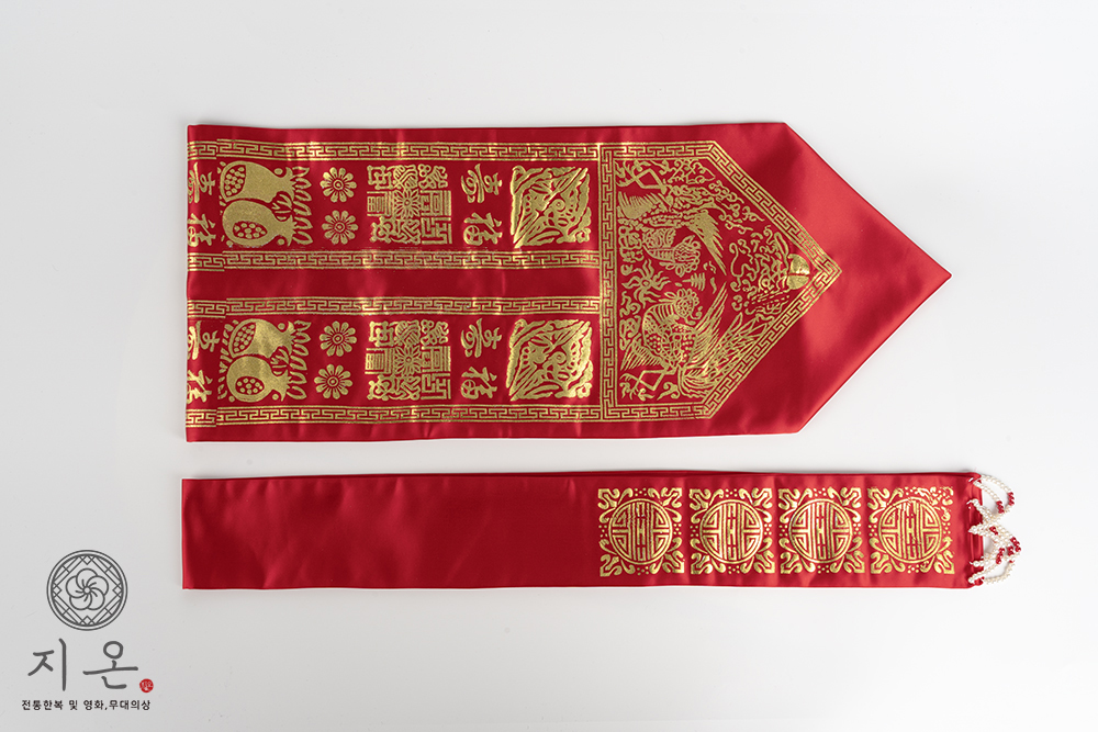 원삼, 활옷 등 전통 혼례복을 할 때 쪽머리를 덮어 뒤로 늘어뜨리는 댕기