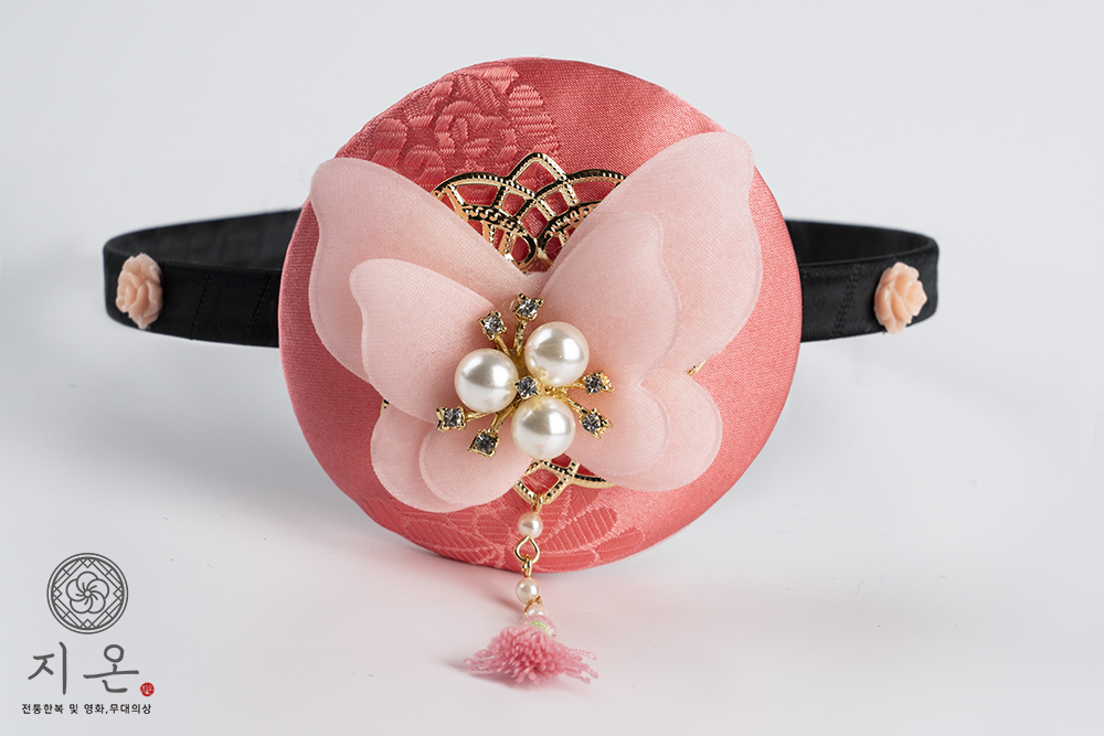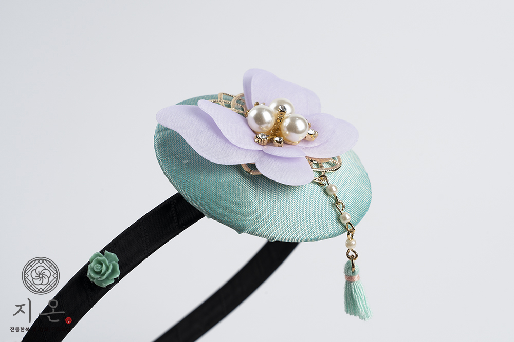 소담스러운 진주장식이 사랑스러운 여아용 배씨 머리띠입니다.