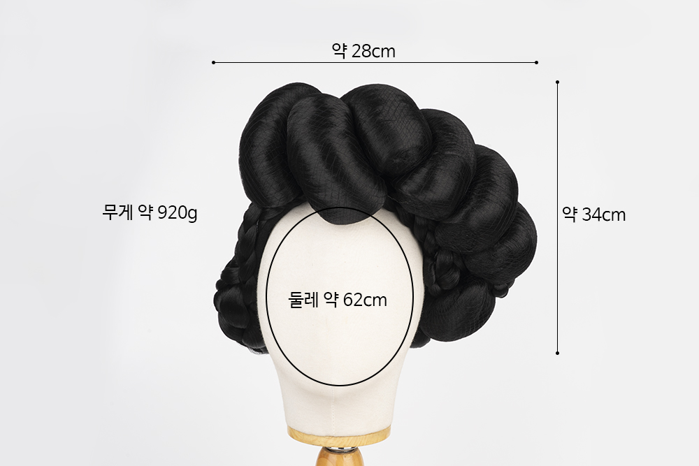 가채머리는 인조실로 제작되어 있어 있습니다.