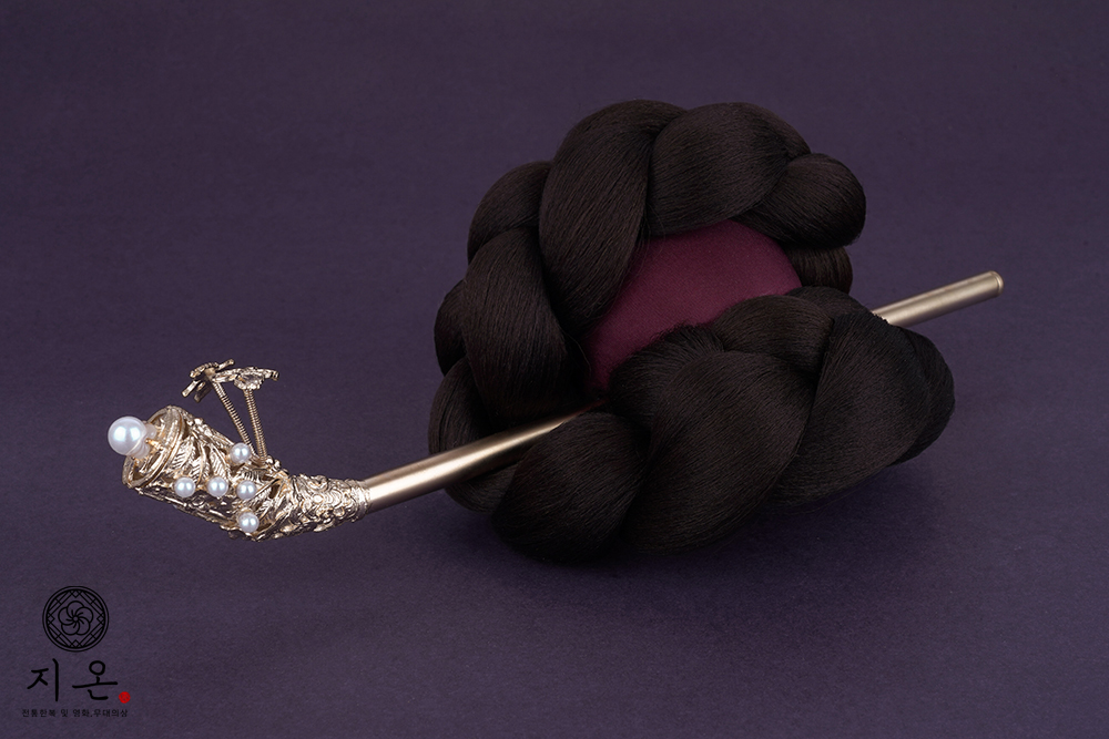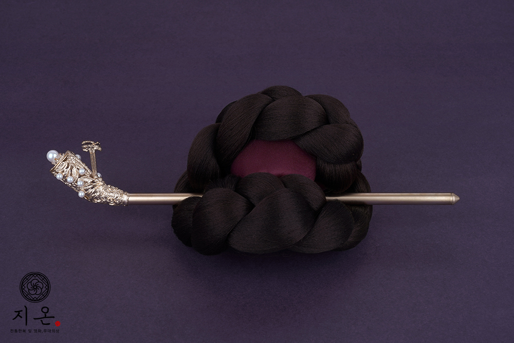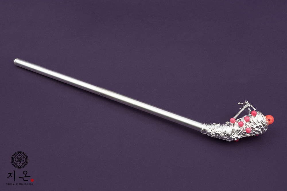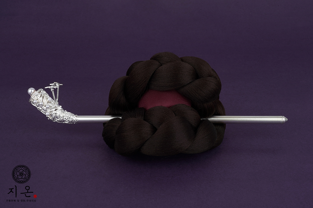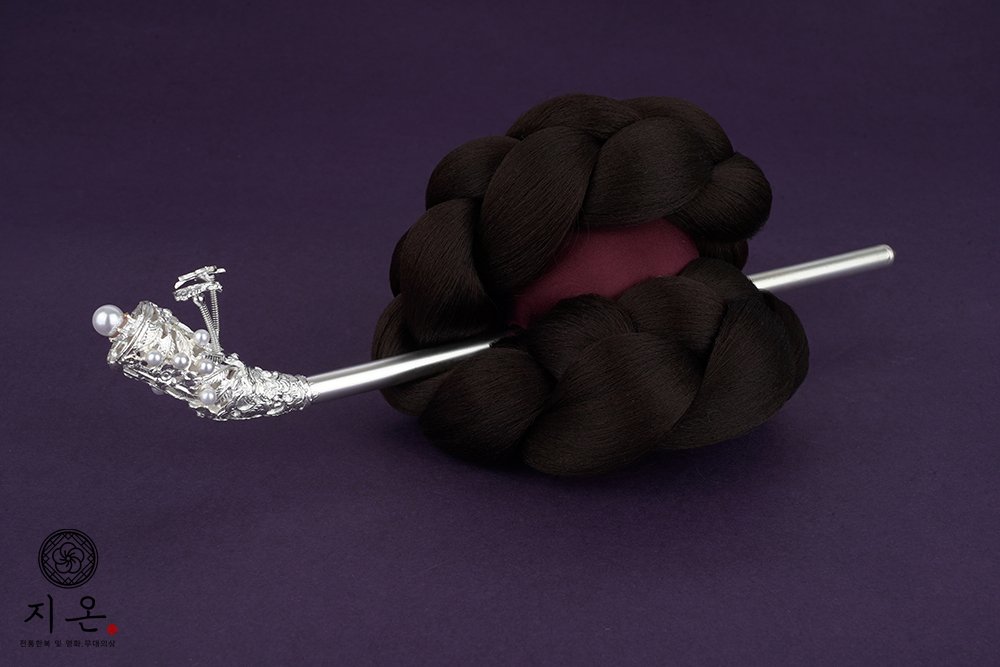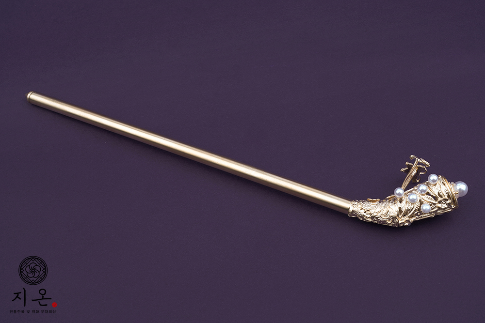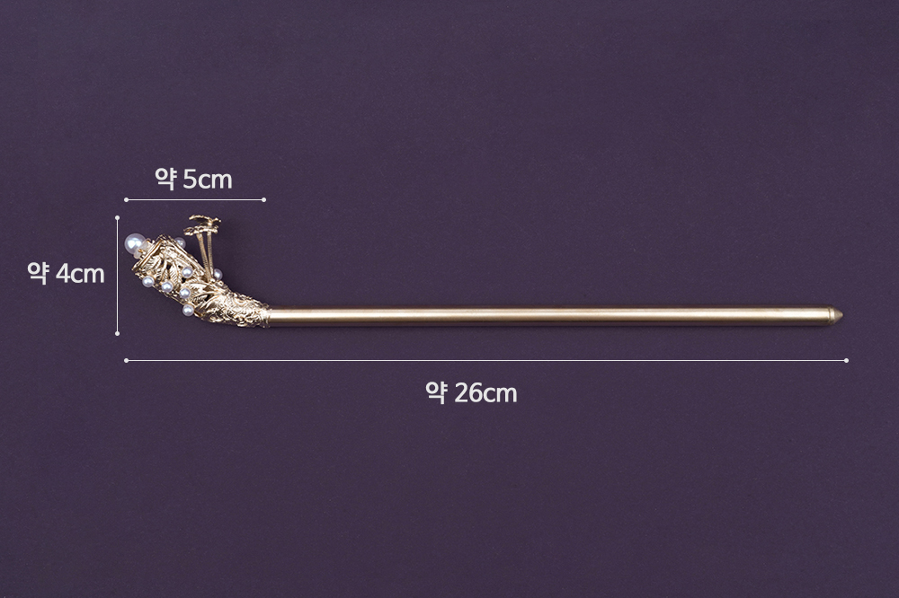 은은하게 빛을 발하는 비녀 몸체에 포인트 진주와 산호가 돋보이는 전통 비녀입니다.