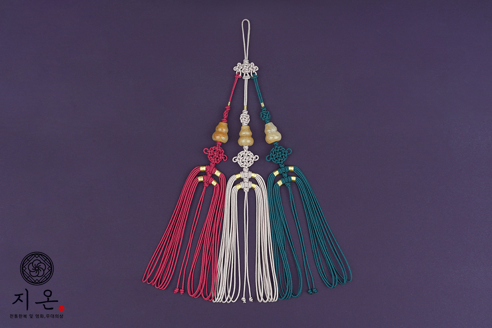 호리병 모양의 천연 황옥이 고급스러운 삼작노리개입니다.