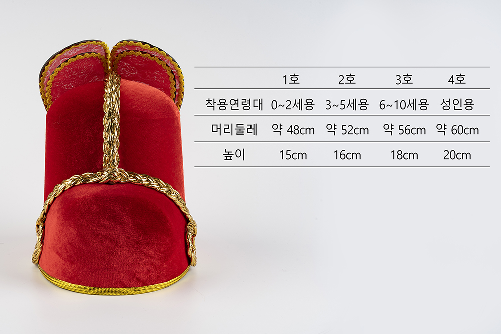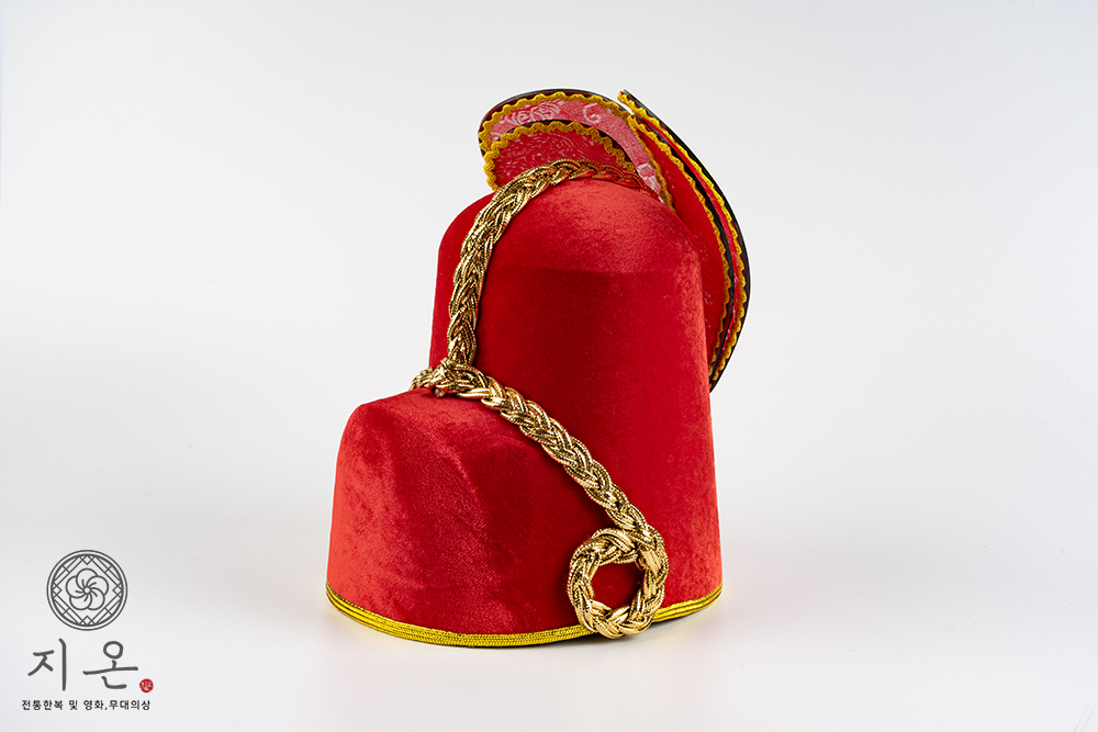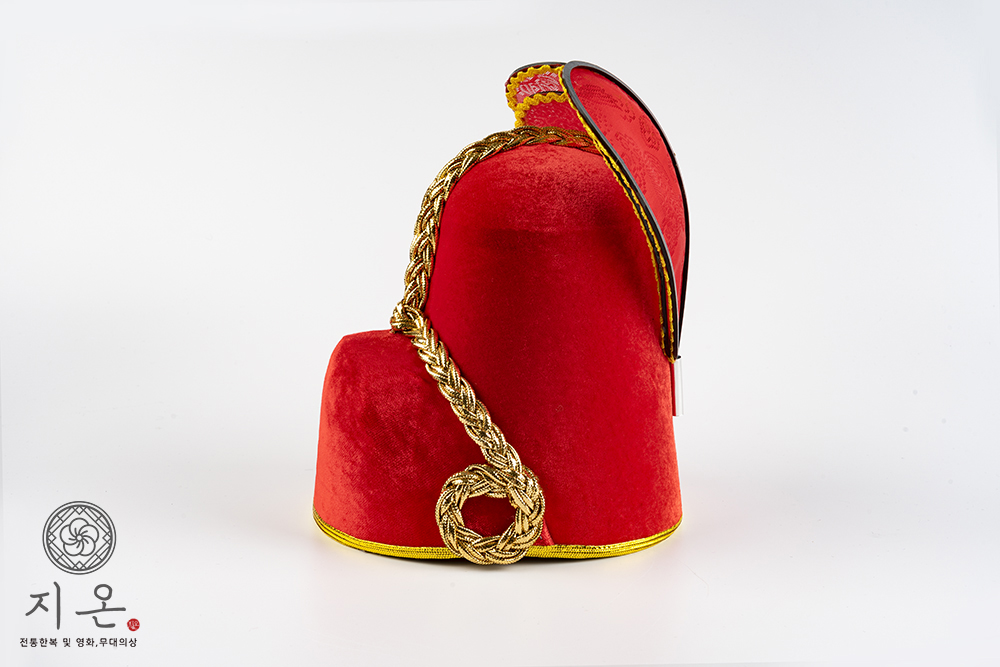 빨간 벨벳 재질이 고급스럽운 익선관입니다.